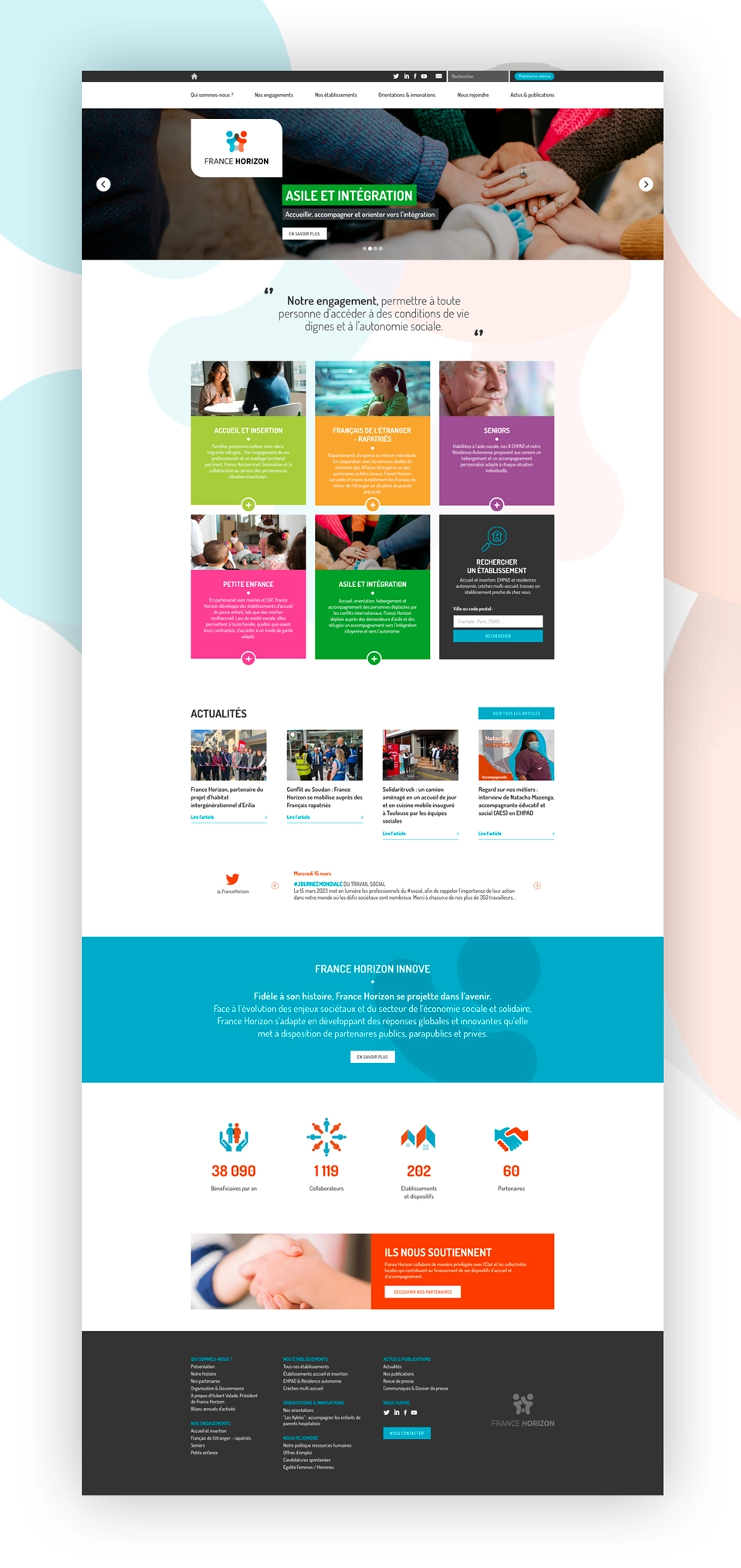Depuis plus de 80 ans, France Horizon accompagne les publics fragiles de la petite enfance au grand âge : inclusion sociale, accueil des demandeurs d'asile et réfugiés, seniors, et petite enfance dans une démarche d'autonomie et de dignité.