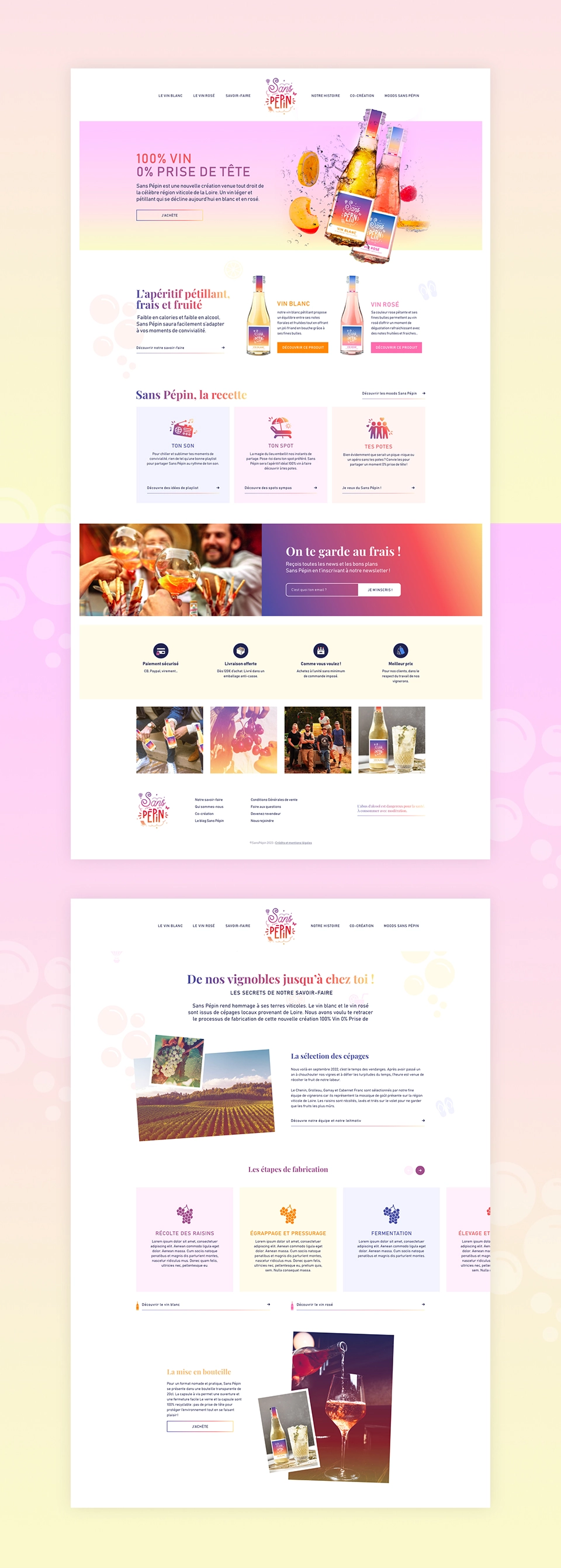Imaginée et co-créée en 2023 par de jeunes vignerons de la Loire, la marque Sans Pépin revisite l’apéritif avec deux vins pétillants, un blanc et un rosé. Une recette naturelle, peu sucrée et fruitée, qui mise avant tout sur la convivialité.